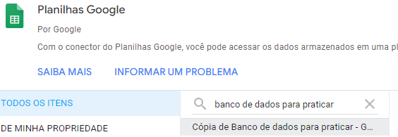 Caso não esteja visualizando a nossa planilha, escreva no campo de busca "Banco de dados para praticar"