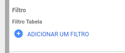 - Clique em um dos gráficos. No menu à direita busque por Filtro > Fitro Tabela > Adicionar um filtro. Clique em Criar um filtro e especifique da seguinte forma:
